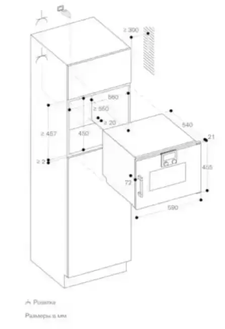 | Размеры ниши для встраивания, ВхШхГ (см) | 45х56х55 |