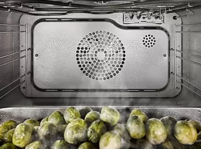 Оснащена приготовление на пару, сенсор влажности и автоматическое отключение подачи пара при открытой дверце.