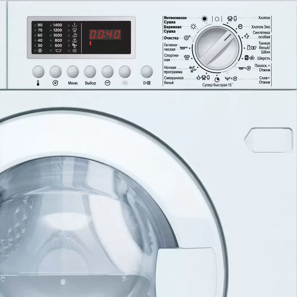 Оснащена обычная экспресс-стирка (быстрая, ежедневная, короткая, освежить, экономичная, мини-программа) и сушка.
