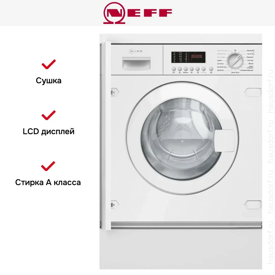 Встраиваемая стирально-сушильная машина Neff V6540X3 — флагманская модель в линейке Neff (немецкого производства), стиральная машина высшего класса.