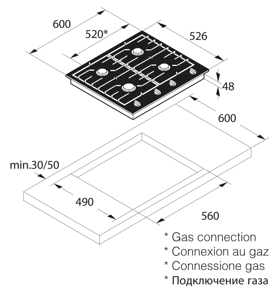 | Размеры ниши для встраивания (Ш х Г), см | 56x49 |