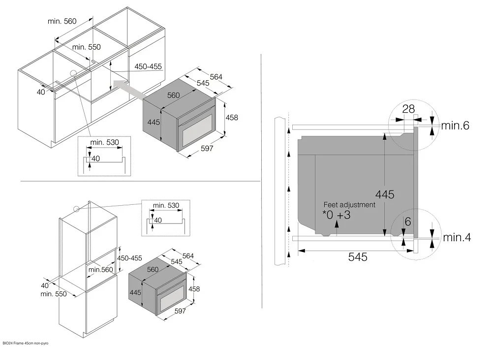 | Размеры ниши для встраивания, ВхШхГ (см) | 45-45.5х56х55 |