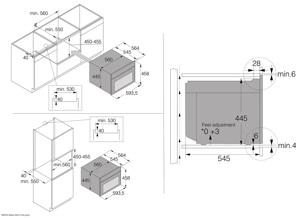 | Размеры ниши для встраивания (ВxШxГ) (cм) | 45х56х55 |