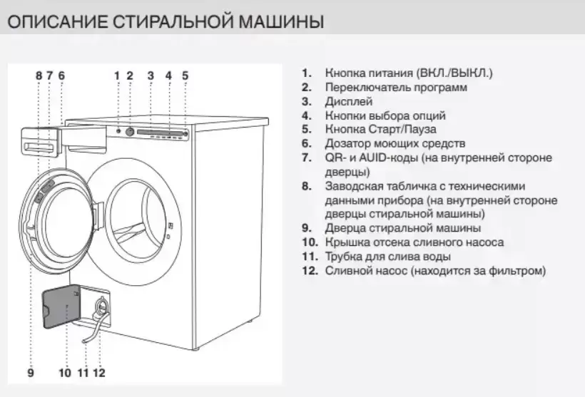 | Загрузочный люк | Разблокировка / электромагнитный замок — возможность дозагрузки белья |