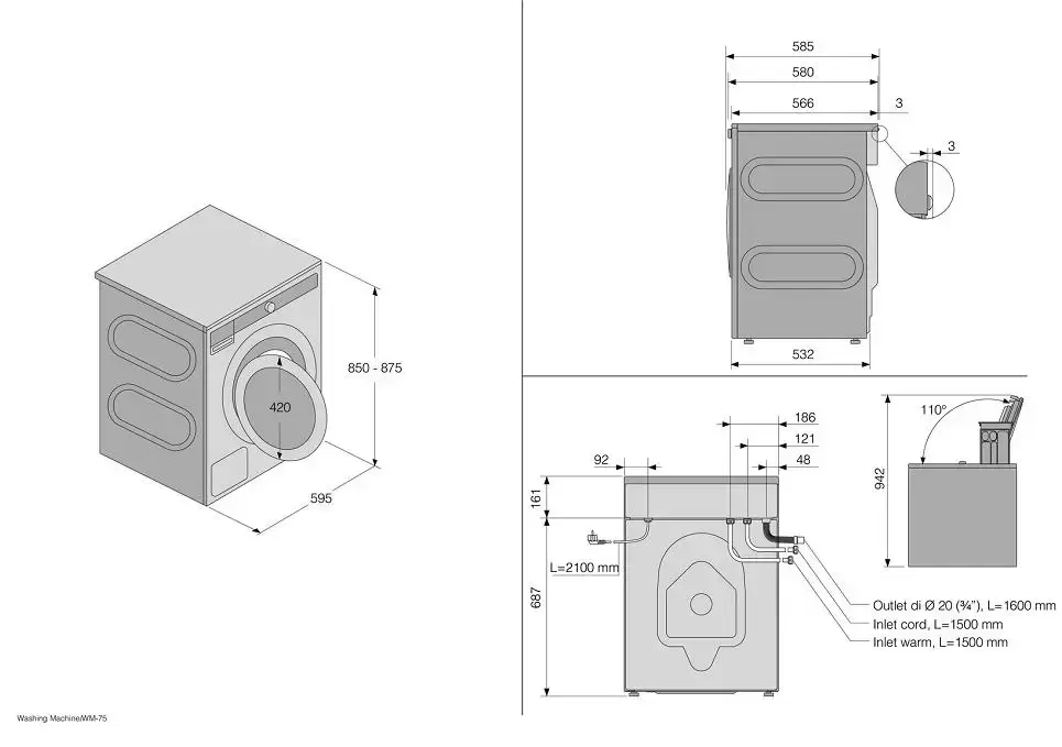 | Особенности | Дозатор моющих средств: AutoDose Quattro Construction™ Дверца Steel Seal™ |