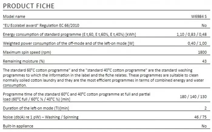 | Уровень шума при стирке (дБ) | 46 |