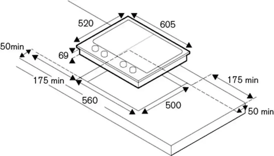 | Размеры ниши для встраивания (Ш х Г), см | 56x50 |