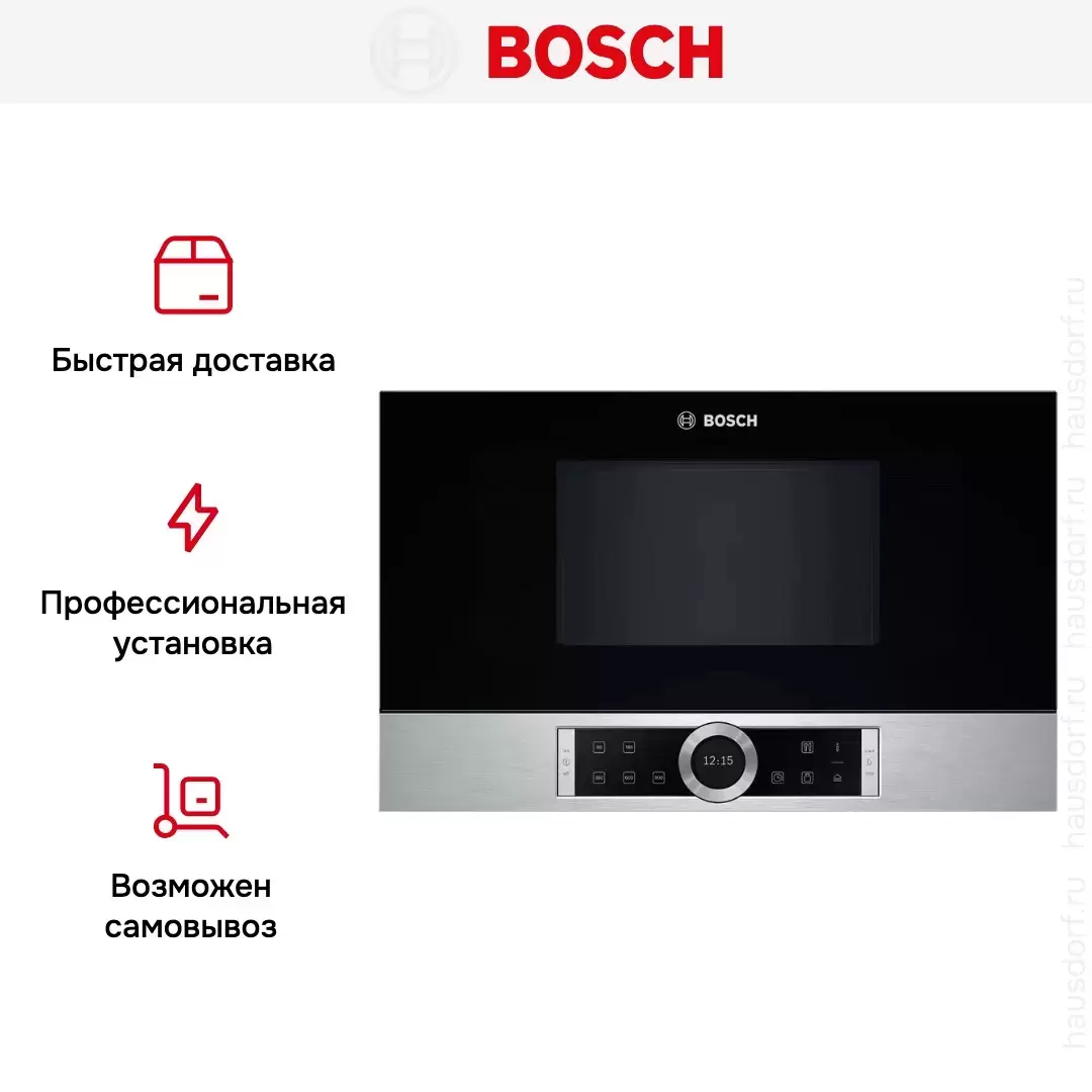 Встраиваемая микроволновая печь Bosch BFL 634GS1 — микроволновая печь высшего класса, немецкого производства, сочетающая надёжность и передовые технологии Bosch.