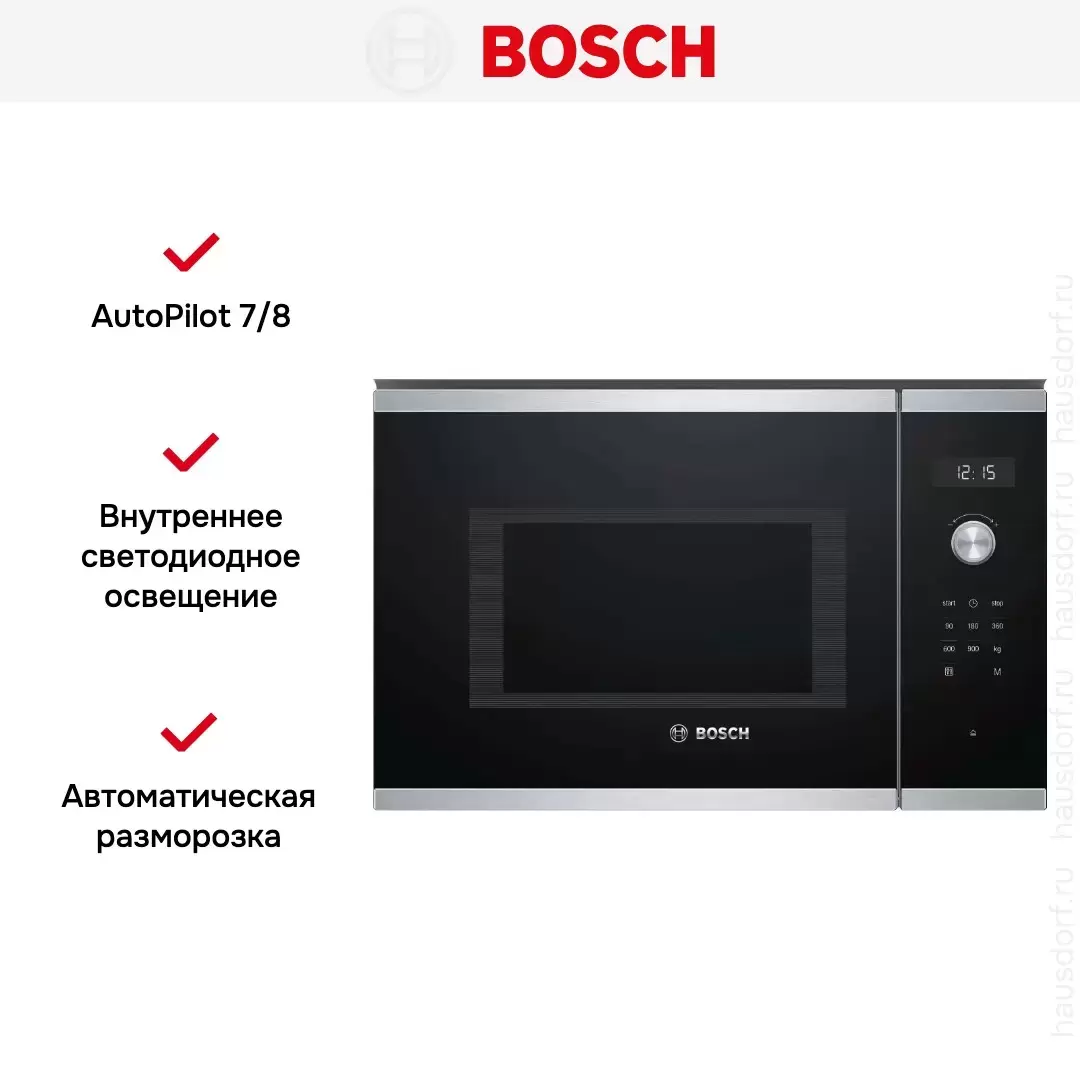 Встраиваемая микроволновая печь Bosch BFL554MS0 — флагманская модель в линейке Bosch (немецкого производства), микроволновая печь премиум-класса.