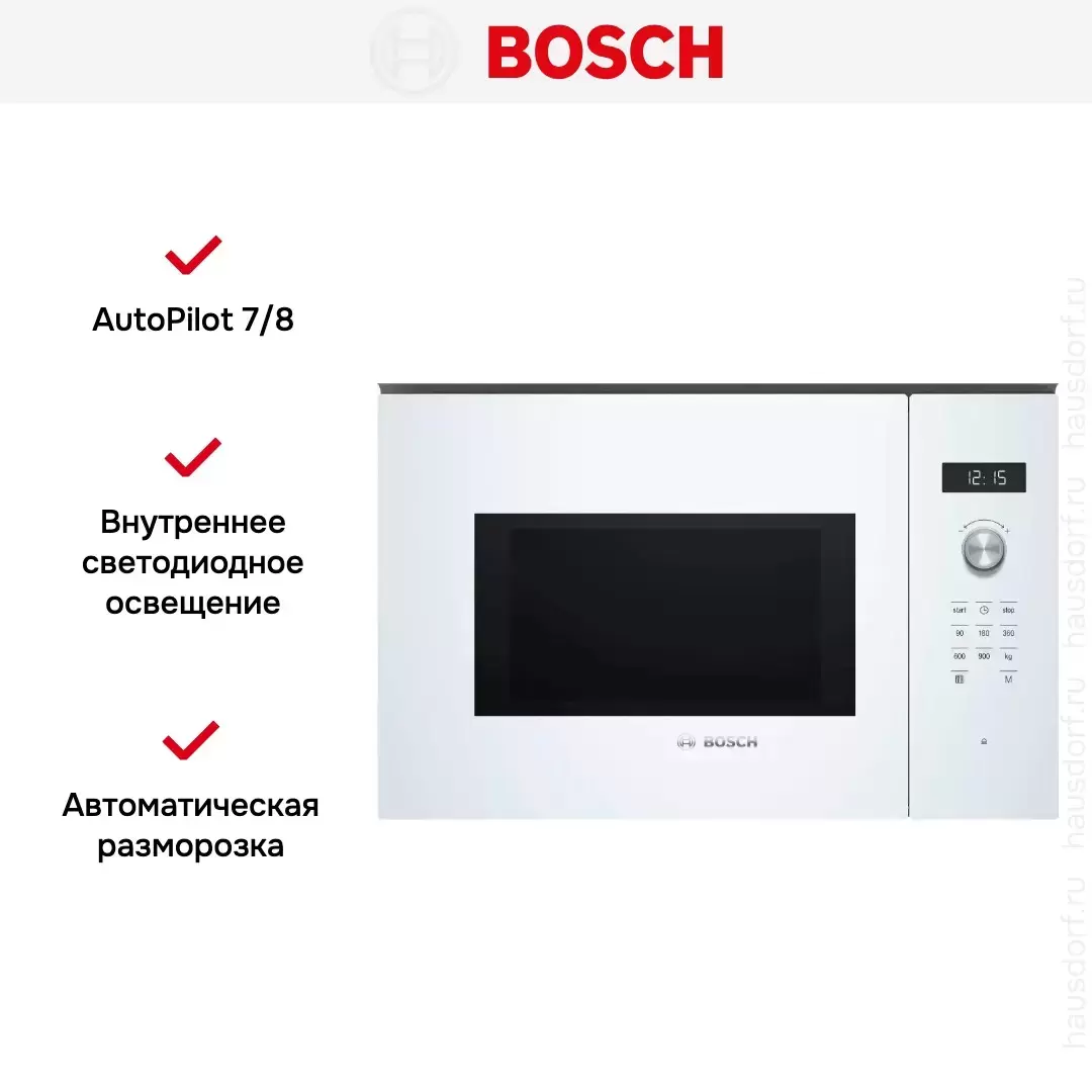 Встраиваемая микроволновая печь Bosch BFL554MW0 — флагманская модель в линейке Bosch (немецкого производства), микроволновая печь премиум-класса.