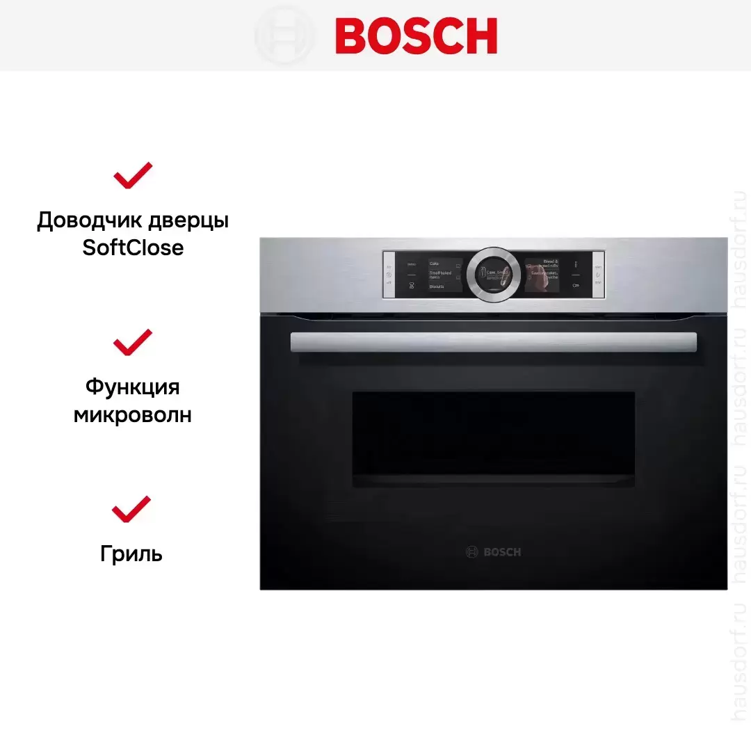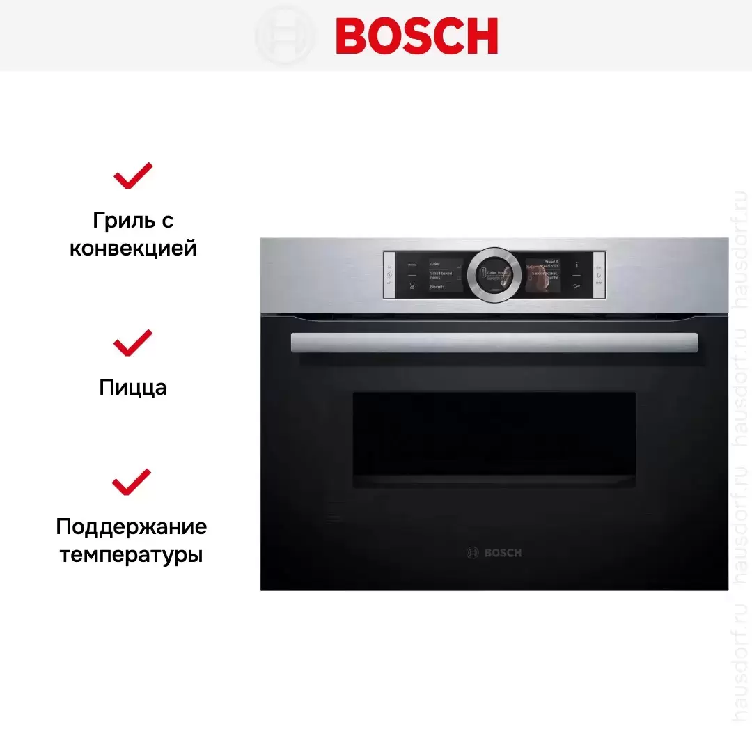 Компактный духовой шкаф Bosch CMG656BS1 — флагманская модель в линейке Bosch (немецкого производства), духовой шкаф премиум-класса.