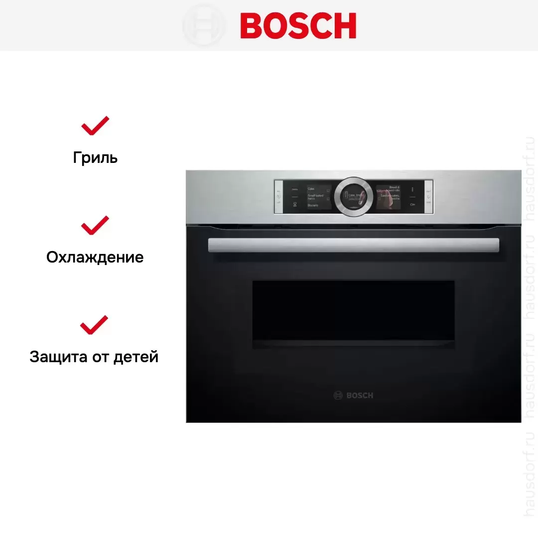 Компактный духовой шкаф Bosch CMG676BS1 — флагманская модель в линейке Bosch (немецкого производства), духовой шкаф высшего класса.