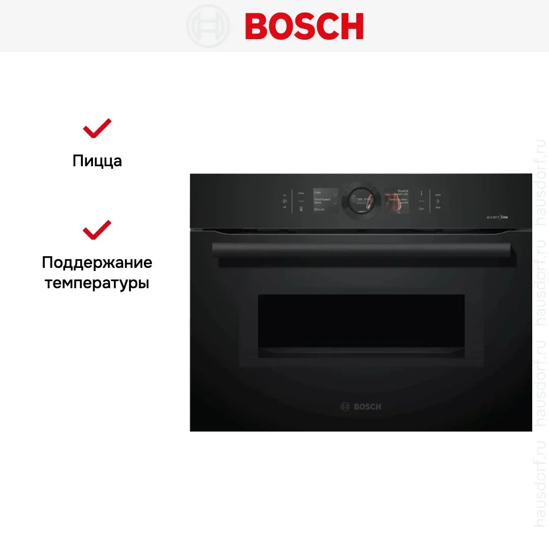 Компактный духовой шкаф Bosch CMG8764C7 — духовой шкаф премиум-класса, немецкого производства, сочетающий надёжность и передовые технологии Bosch.