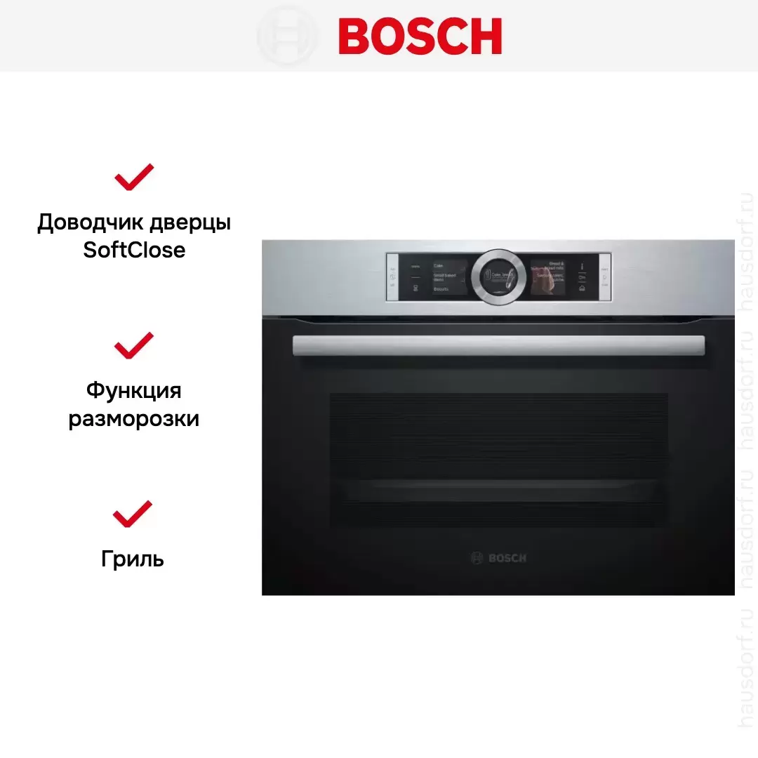Компактный паровой духовой шкаф Bosch CSG 636 BS3 — духовой шкаф высшего класса, немецкого производства, сочетающий надёжность и передовые технологии Bosch.