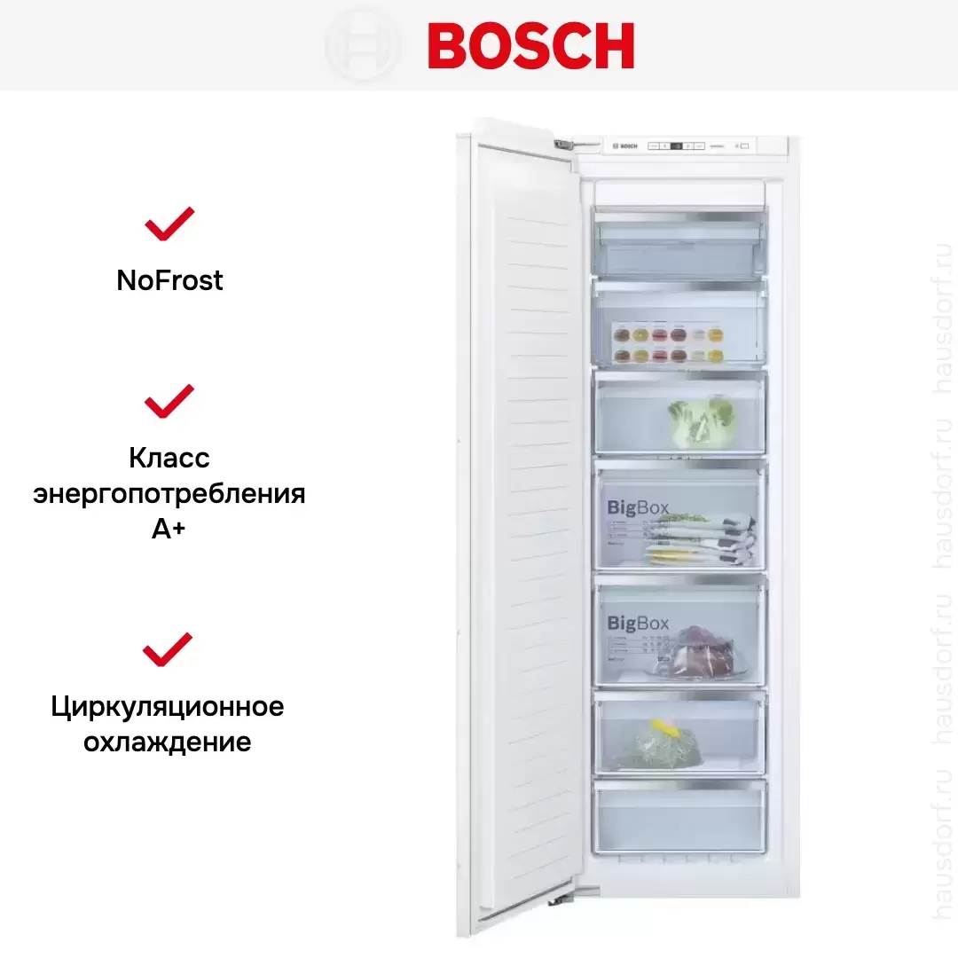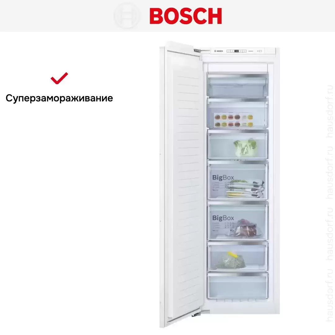 Встраиваемый морозильник Bosch GIN81AE20R — флагманская модель в линейке Bosch (немецкого производства), холодильник класса люкс.