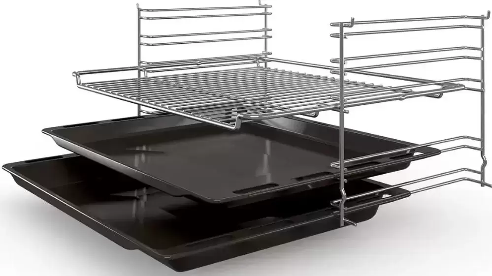 | Дополнительные параметры | Тип штепсельной вилки - вилка с заземлением Материал двери - стекло Глубина при открытой двери - 1 010 мм Размер большого противня - 1 350 см² Выдвижная тележка духовки Accessory |