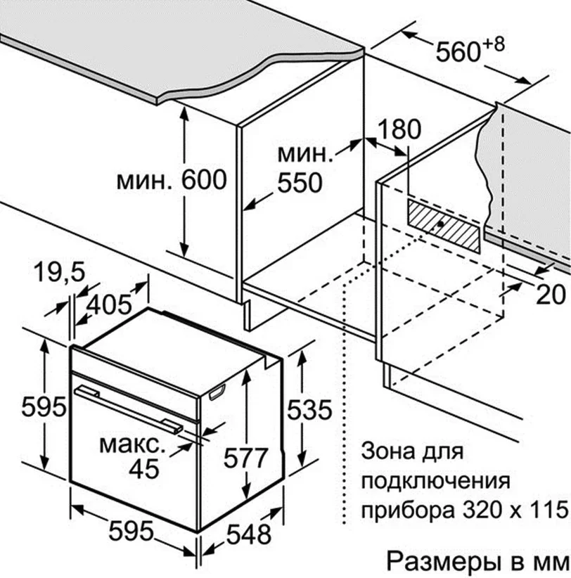 | Размеры ниши для встраивания, ВхШхГ (см) | 58.5-59.5х56-56.8х55 |
