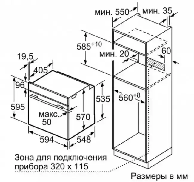 | Размеры ниши для встраивания, ВхШхГ (см) | 58.5-59.5х56-56.8х55 |