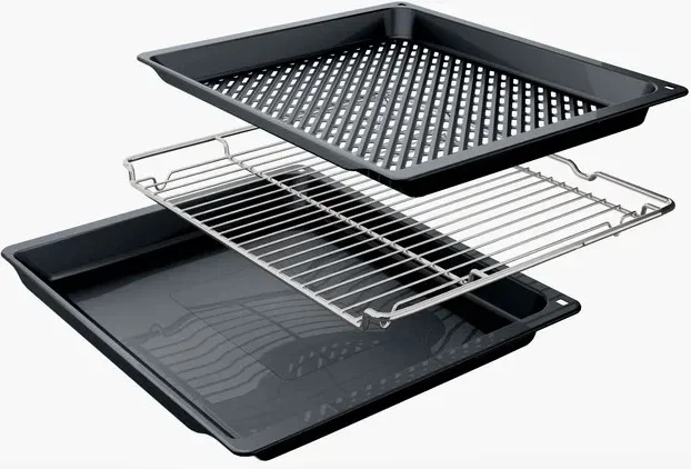 | Комплектация | Телескопические направляющие (1-уровневые) Решетка Универсальный противень Эмалированный противень |