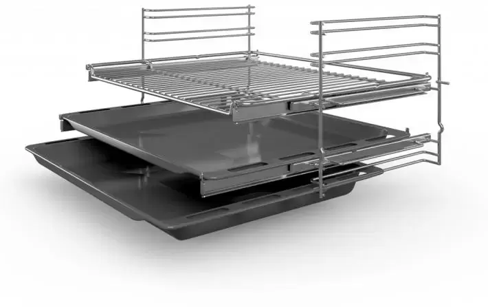 | Комплектация | Телескопические направляющие (2-уровневые) Решетка Универсальный противень Эмалированный противень |