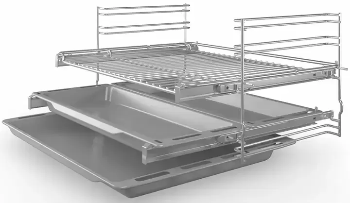 | Комплектация | Телескопические направляющие (2-уровневые) Решетка Универсальный противень Противень (2 шт) |