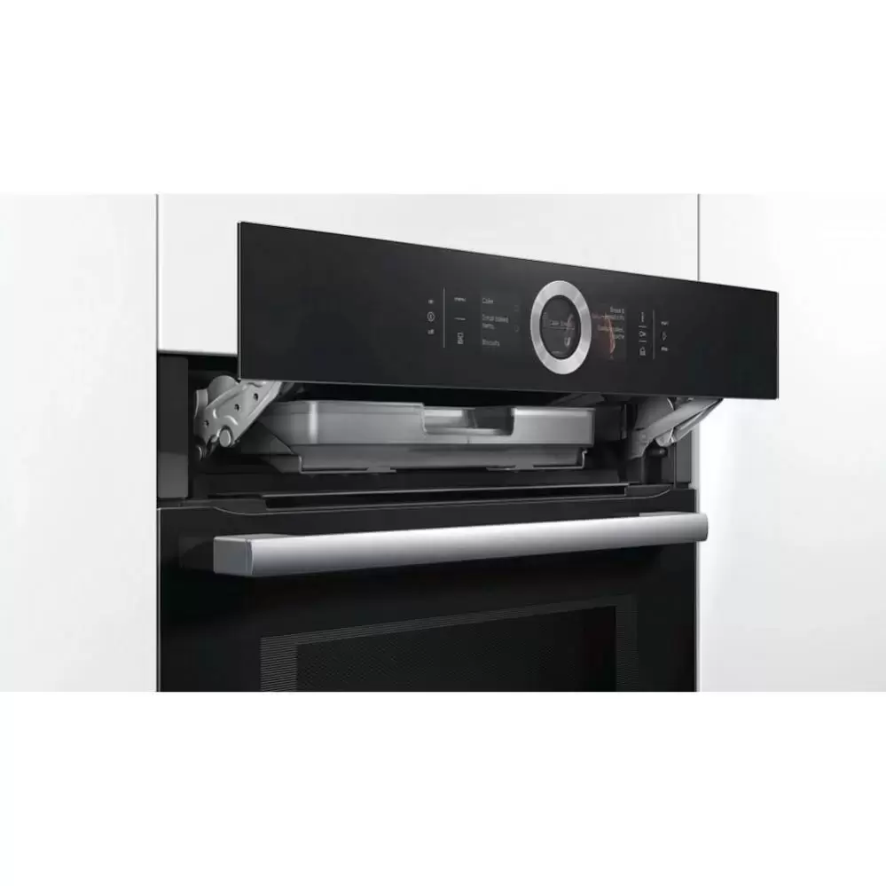 | Дополнительные параметры | Автоматические программы DishAssist Сенсор готовности выпечки PerfectBake Многоточечный термощуп PerfectRoast Технология Home Connect 3 цветных текстовых TFT-дисплея 2,5" Максимальная мощность микроволн: 800 Вт 5 уровней мощности микроволн (90 Вт,180 Вт, 360 Вт, 600 Вт,800 Вт) Функция "Блокировка от детей" с возможностью настройки Автоматическое защитное отключение Многофункциональные часы Индикация отсутствия воды в резервуаре Конвекционный вентилятор из нержавеющей стали Предложение по установке температуры |