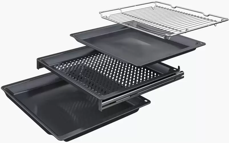 | Комплектация | Телескопические направляющие (1-уровневые) Решетка Термощуп Универсальный противень Эмалированный противень |