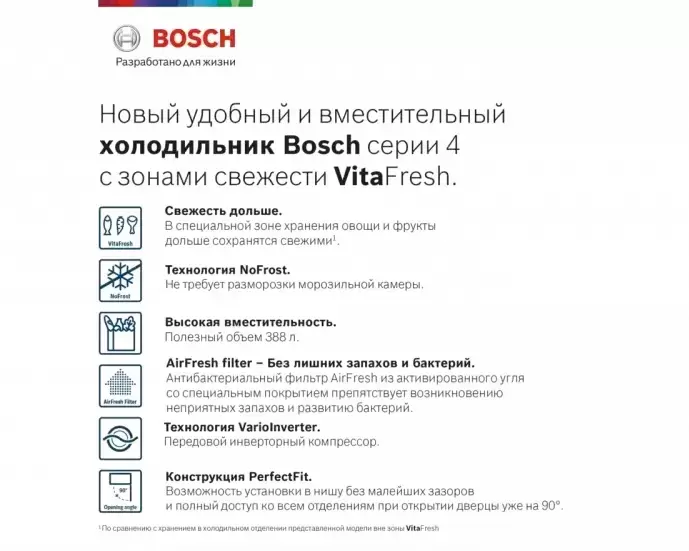 Холодильник с нижней морозильной камерой BOSCH KGN39XC27R — холодильник премиум-класса, немецкого производства, сочетающий надёжность и передовые технологии Bosch.