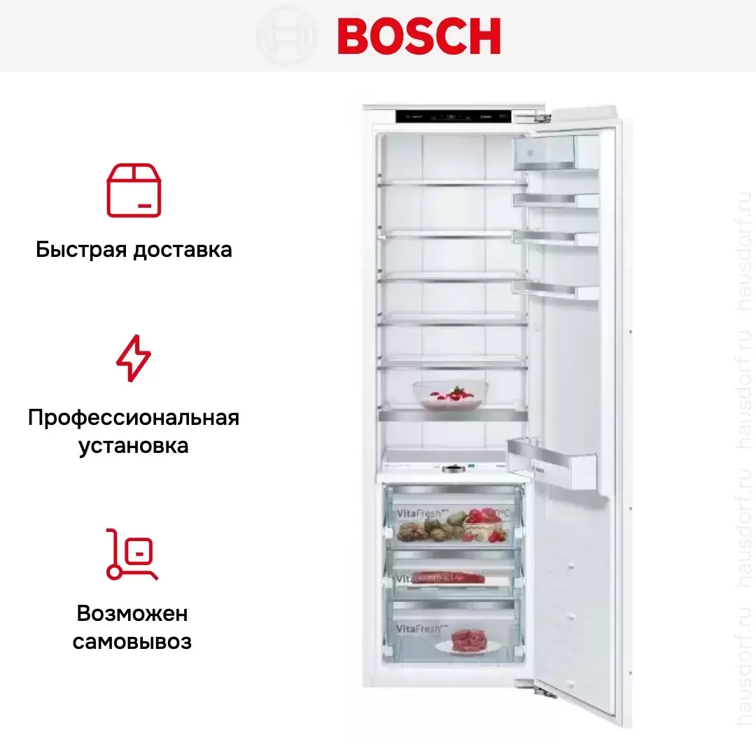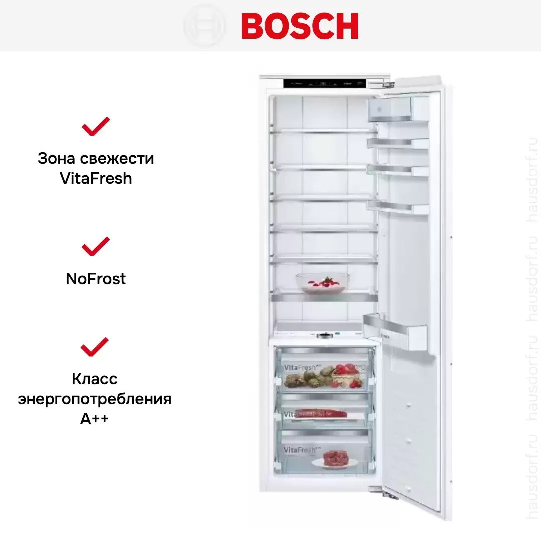 Встраиваемый холодильник BOSCH KIF81PD20R — флагманская модель в линейке Bosch (немецкого производства), холодильник премиум-класса.