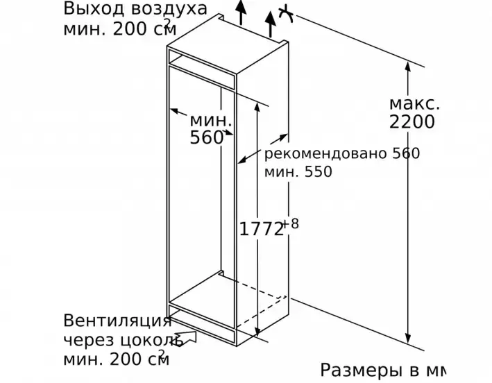 | Габариты ниши для встраивания (ВхШхГ) (см) | 177.5х56х55 |