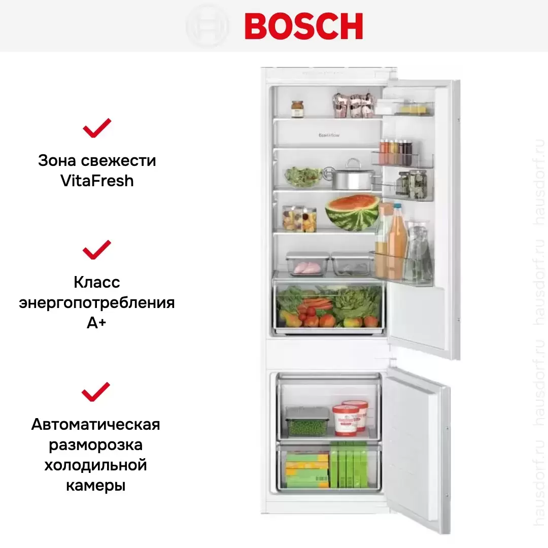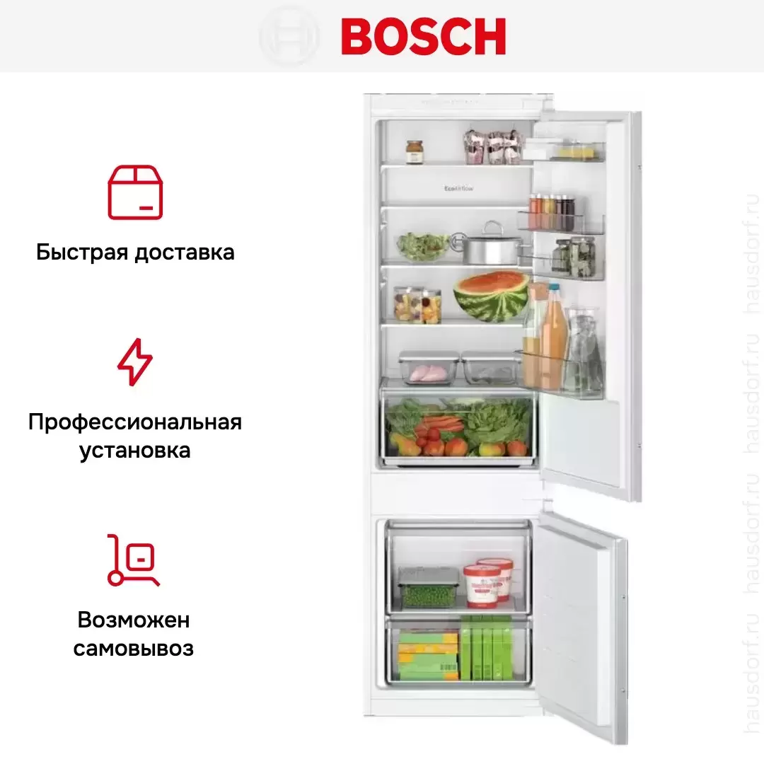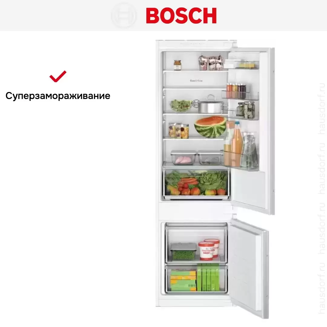 Встраиваемый двухкамерный холодильник Bosch KIV 87 NSF0 — флагманская модель в линейке Bosch (немецкого производства), холодильник класса люкс.
