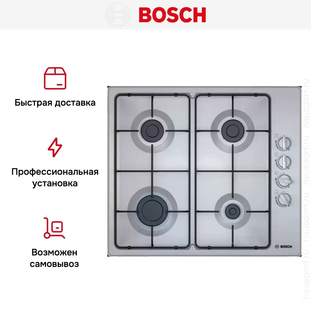 Газовая варочная панель Bosch PBP6C5B82O — варочная панель премиум-класса, немецкого производства, сочетающая надёжность и передовые технологии Bosch.