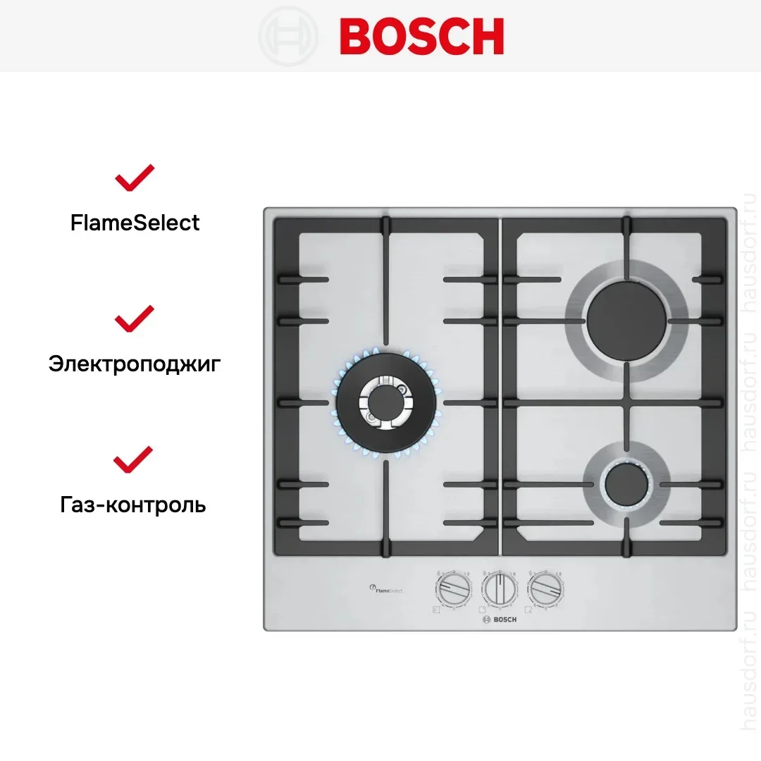Газовая варочная панель Bosch PCC6A5I90 — флагманская модель в линейке Bosch (немецкого производства), варочная панель премиального сегмента.