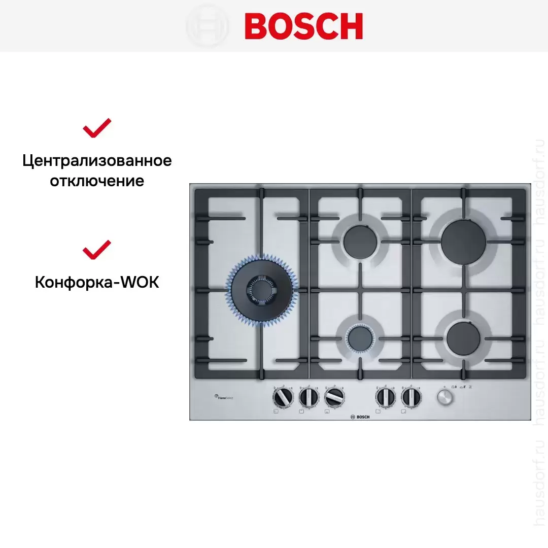 Газовая варочная поверхность Bosch PCS7A5M90 — флагманская модель в линейке Bosch (немецкого производства), варочная панель класса люкс.