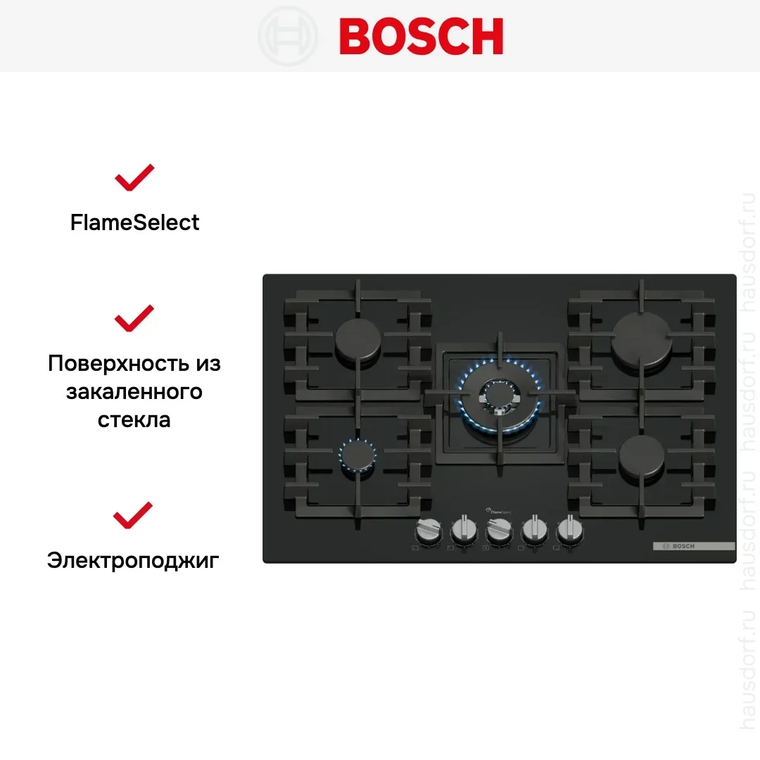 Газовая варочная панель Bosch PPQ7A6I45 — флагманская модель в линейке Bosch (немецкого производства), варочная панель премиум-класса.
