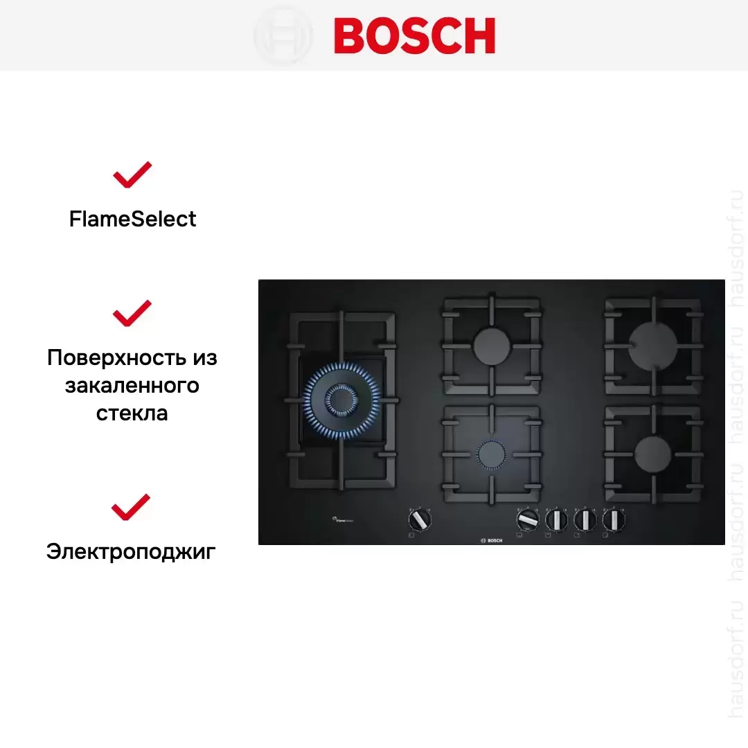 Газовая варочная панель Bosch PPS9A6B90 — флагманская модель в линейке Bosch (немецкого производства), варочная панель премиального сегмента.