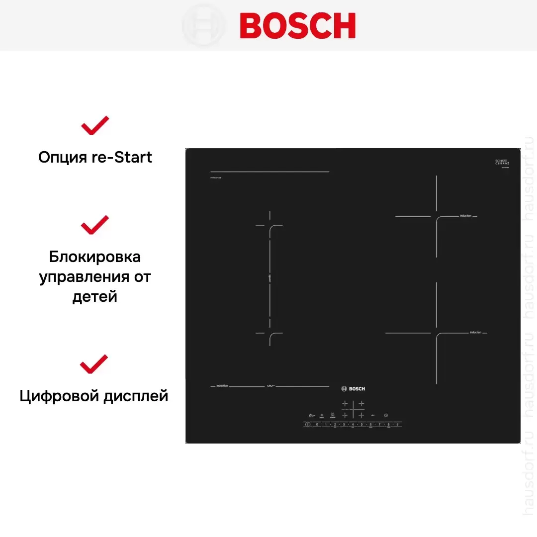 Индукционная варочная панель Bosch PVS611FC5Z — флагманская модель в линейке Bosch (немецкого производства), варочная панель премиум-класса.