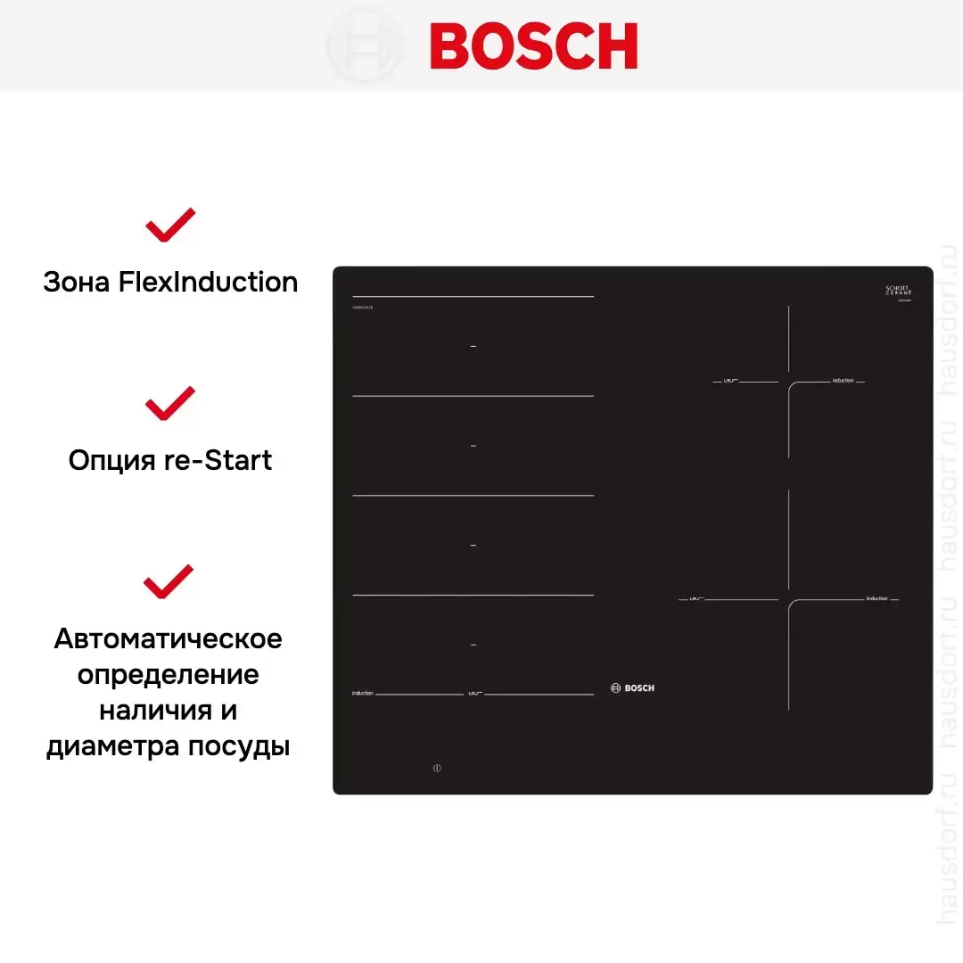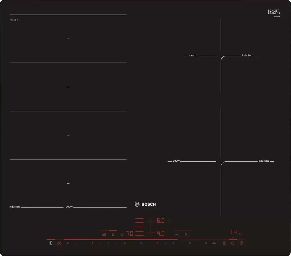 Индукционная варочная панель Bosch PXE601DC1E — варочная панель премиум-класса, немецкого производства, сочетающая надёжность и передовые технологии Bosch.