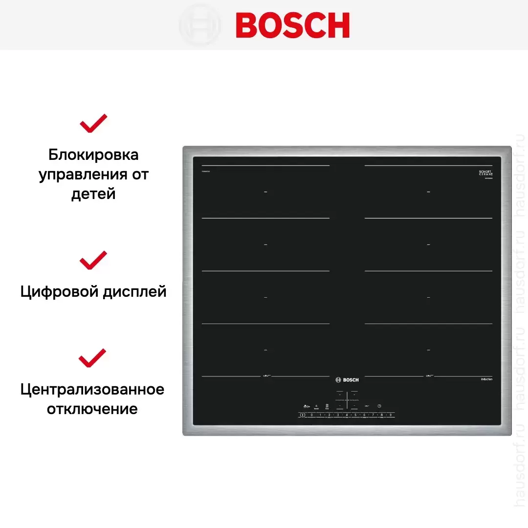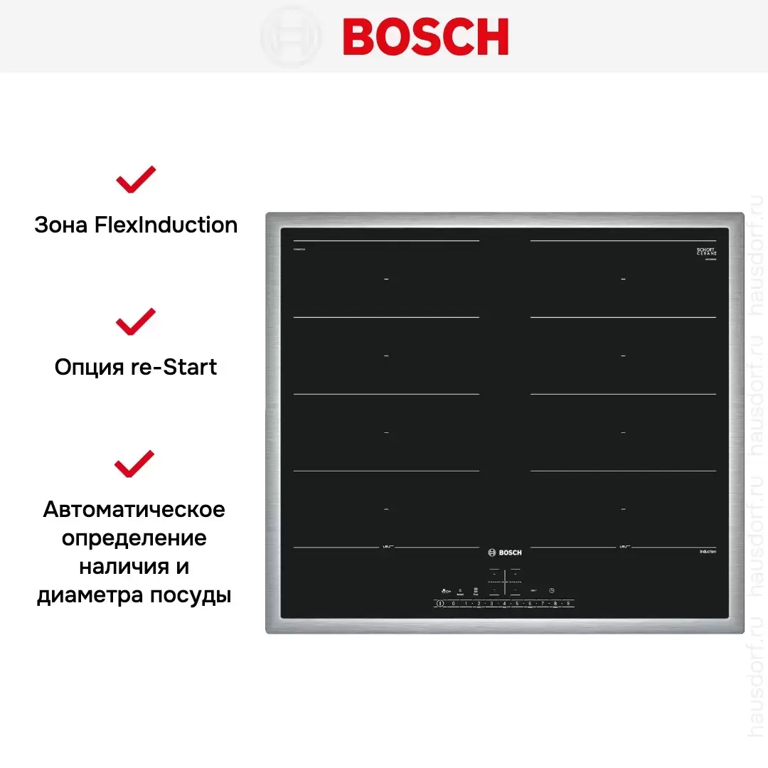 Индукционная варочная панель Bosch PXX645FC1E — варочная панель премиального сегмента, немецкого производства, сочетающая надёжность и передовые технологии Bosch.