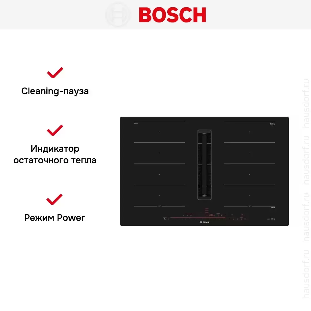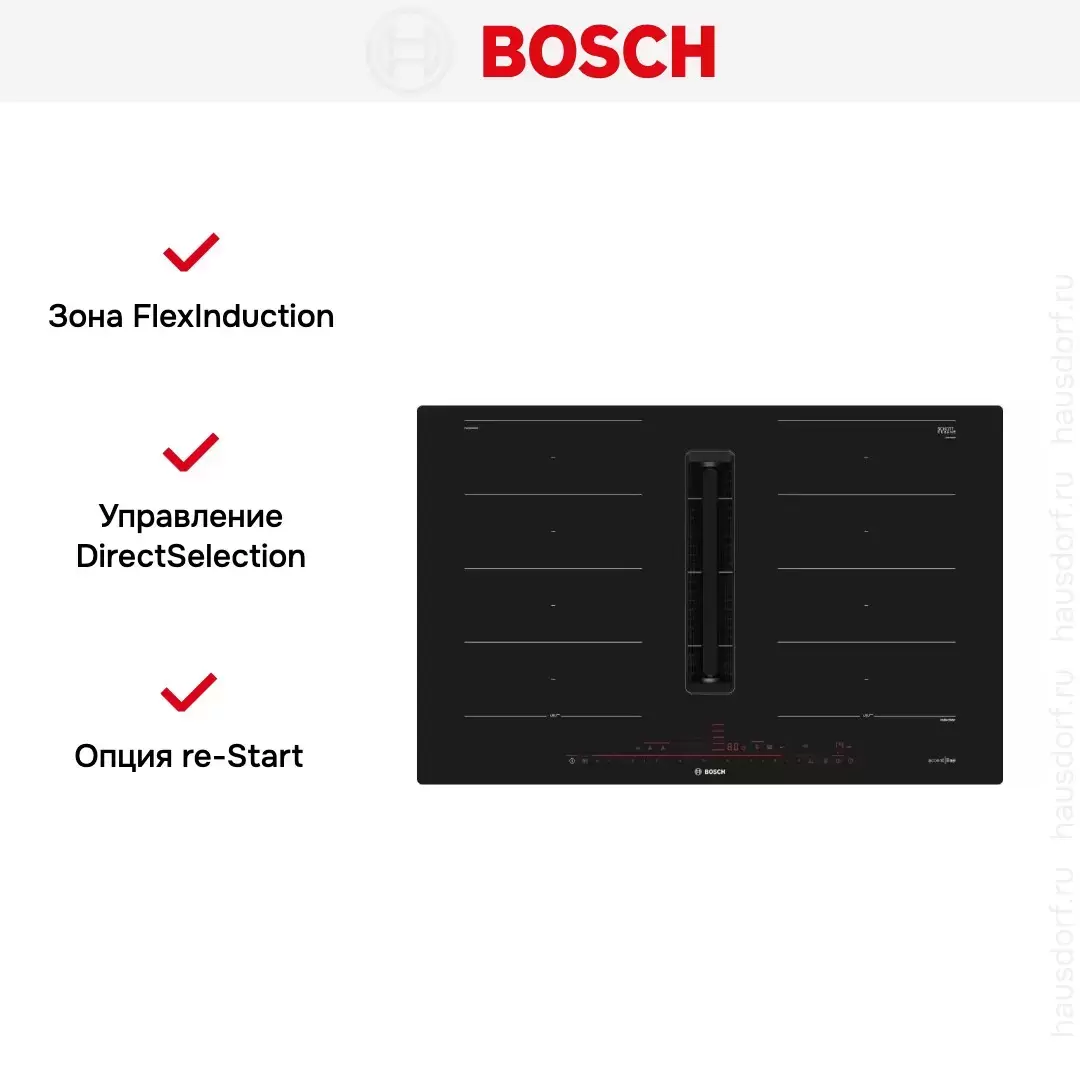 Индукционная варочная панель с интегрированной вытяжкой BOSCH PXX821D66E — флагманская модель в линейке Bosch (немецкого производства), варочная панель премиального сегмента.