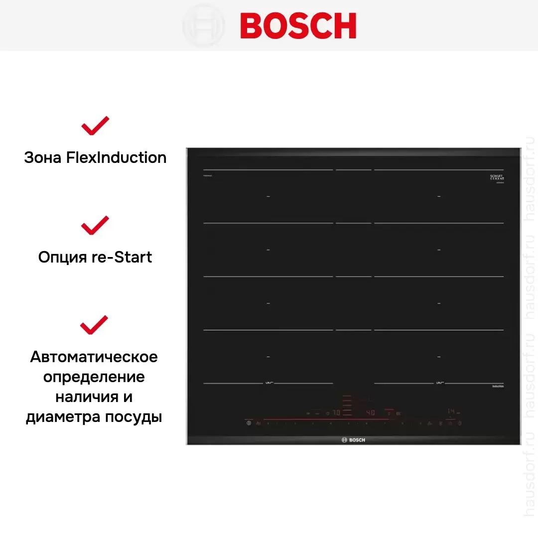 Индукционная варочная панель Bosch PXY675DC1E — варочная панель премиального сегмента, немецкого производства, сочетающая надёжность и передовые технологии Bosch.