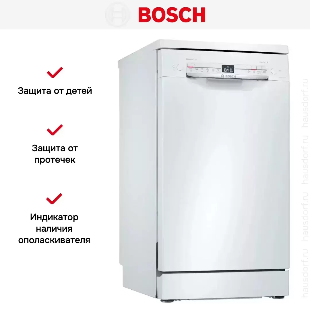 Отдельностоящая посудомоечная машина BOSCH SPS2IKW2CR — посудомоечная машина премиум-класса, немецкого производства, сочетающая надёжность и передовые технологии Bosch.