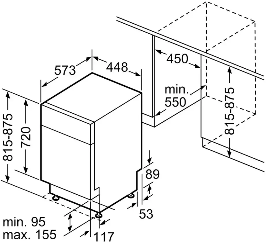| Размеры ниши для встраивания (ВхШхГ) (см) | 81.5-87.5х45х55 |