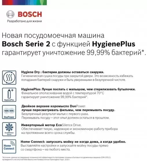 Встраиваемая посудомоечная машина BOSCH SPV2HKX2DR — посудомоечная машина премиум-класса, немецкого производства, сочетающая надёжность и передовые технологии Bosch.