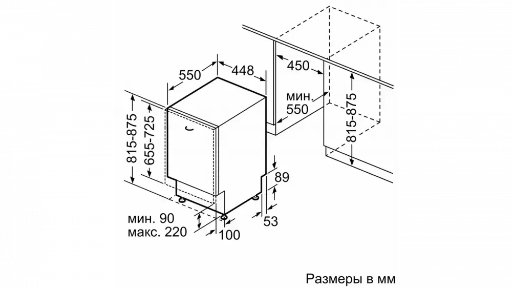 | Размеры ниши для встраивания (ВхШхГ) (см) | 81.5-87.5х45х55 |