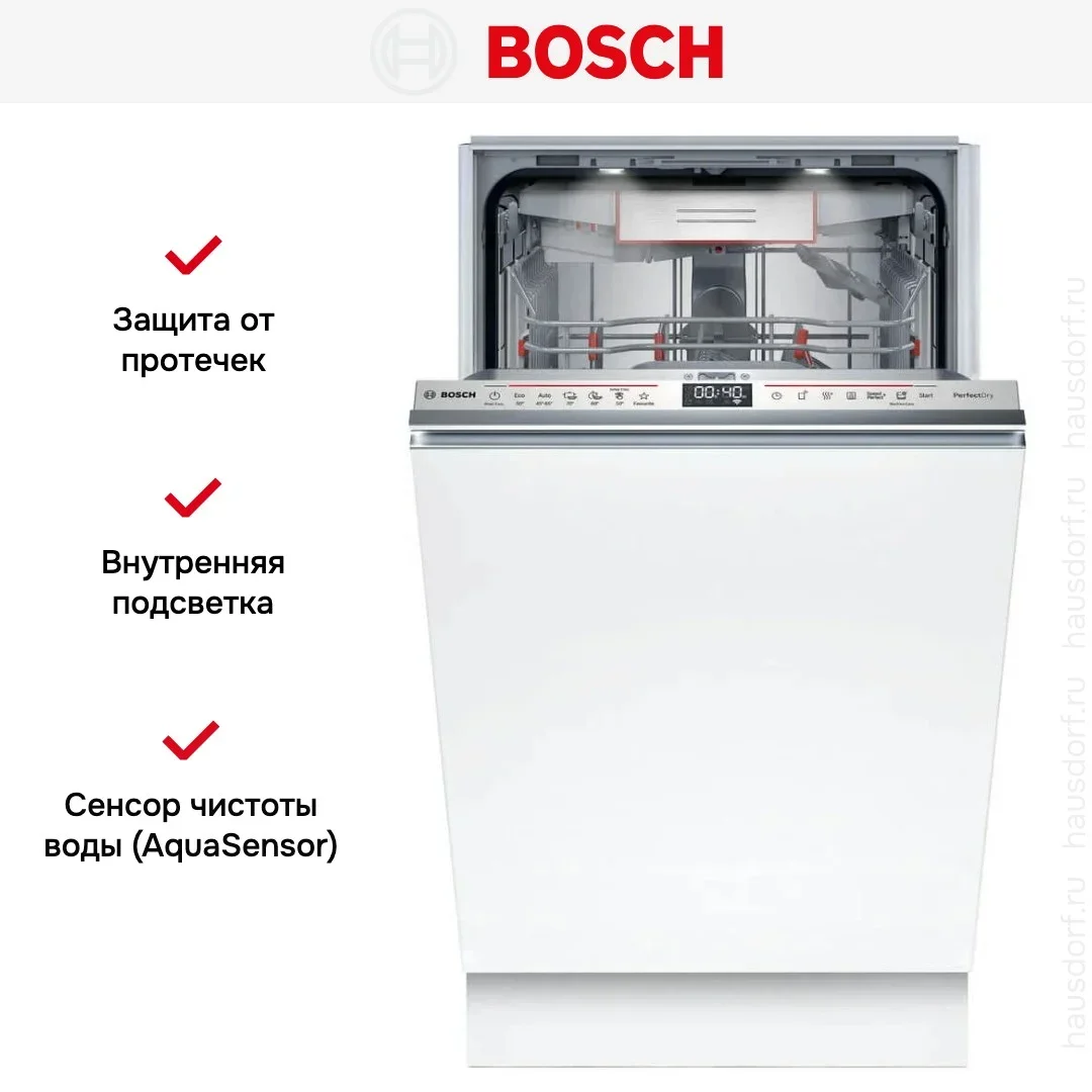 Встраиваемая посудомоечная машина Bosch SPV6YMX08E — посудомоечная машина высшего класса, немецкого производства, сочетающая надёжность и передовые технологии Bosch.