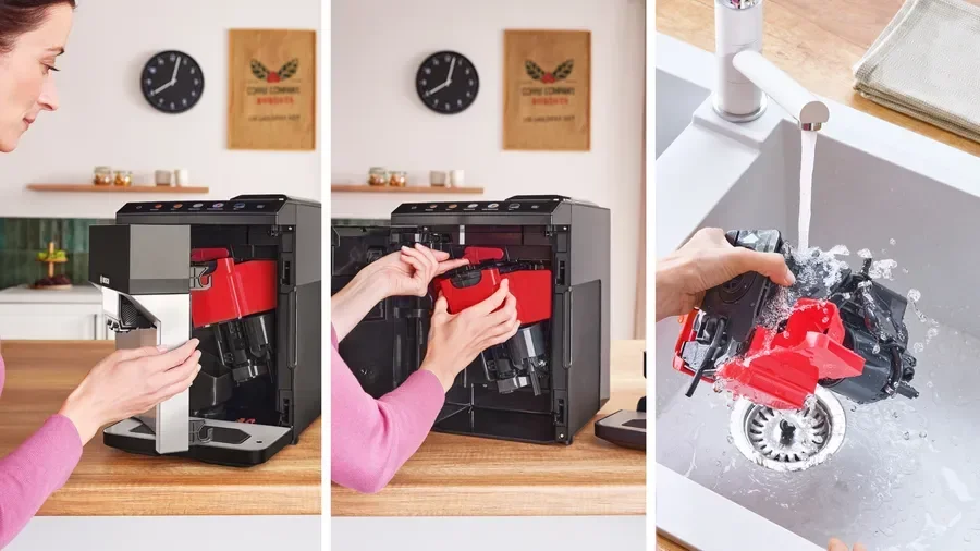 Оснащена функцией автоматическая очистка молочной системы паром.