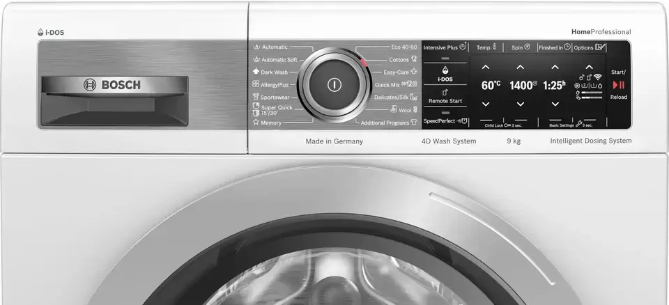 | Интеллектуальное управление стиркой | Система управления водой ActiveWater Сенсорная система дозирования моющего средства i-DOS Технология Antistain 4D Wash System |