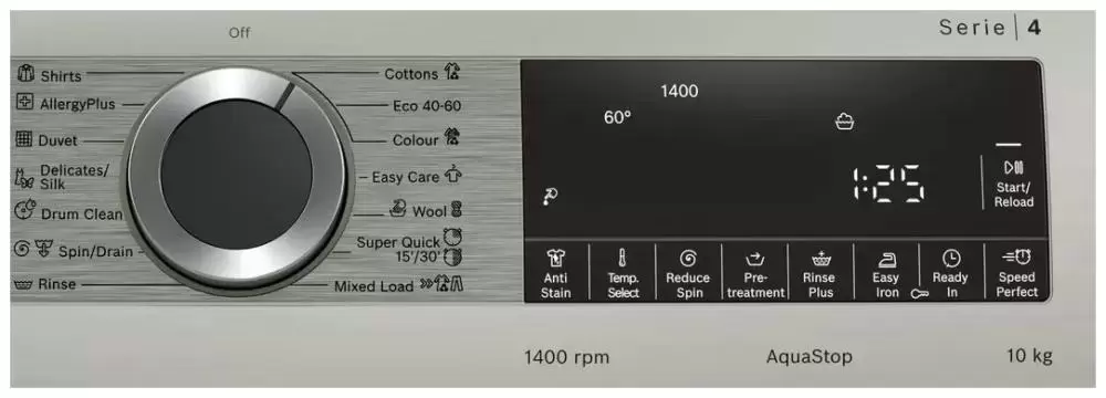 | Интеллектуальное управление стиркой | Система управления водой ActiveWater Технология Antistain Непрерывная система дозирования воды по степени загрузки и типу ткани SpeedPerfect |