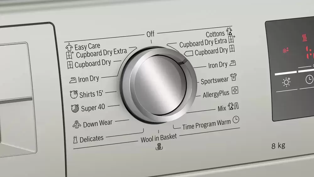 | Индикация | Хода программы / этапа сушки / времени выполнения цикла Времени до окончания программы Заполнения емкости для конденсата / необходимости опорожнения резервуара Заполнения ворсового фильтра / необходимости смены фильтра |